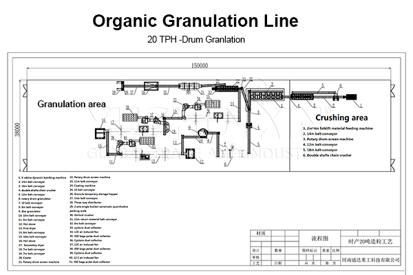 In general, for the workshop of rotary drum granulation line of compost materials, you need to prepare an area of 5,000-6,000㎡.
